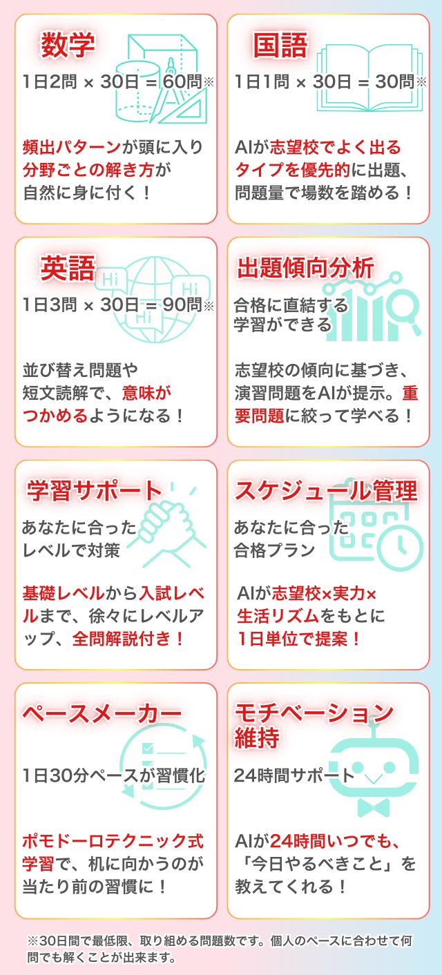 苦手な科目にも挑戦しやすくなり、試験直前の追い込みにも最適な学習方法となっています。